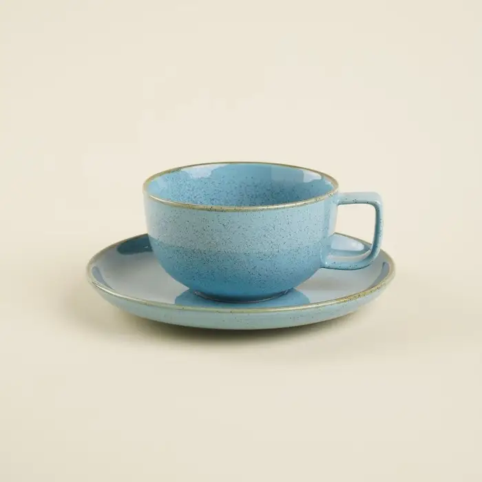 Чайная пара фарфоровая SL Home «Аззура», 2 предмета: чашка 300 мл, блюдце d=16,5 см, цвет бирюзовый