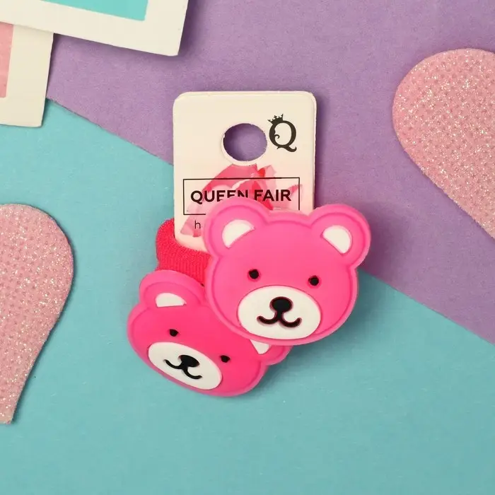 Резинка для волос "Крошка" (набор 2 шт) мишка,3 см ,ярко розовый
