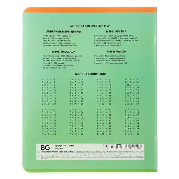 Тетрадь 12 листов в крупную клетку на скрепке "Друзья", обложка мелованный картон, ВД-лак, МИКС
