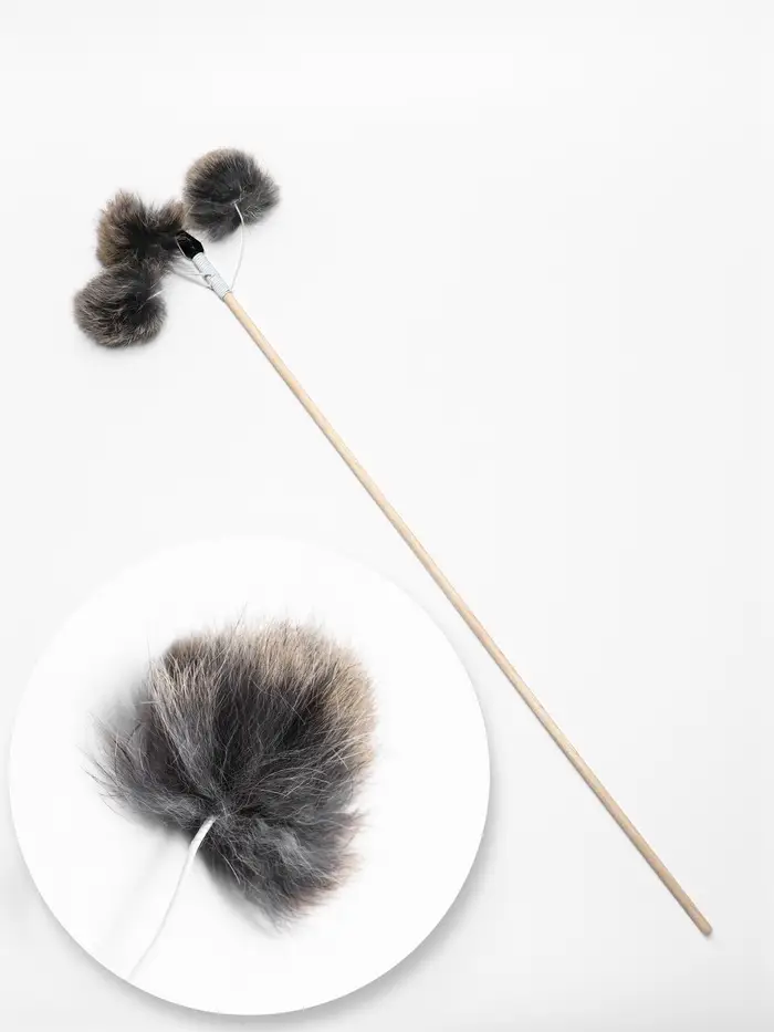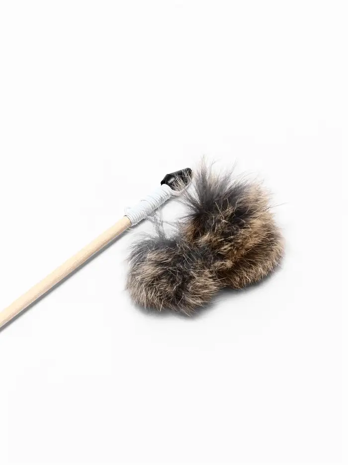 Дразнилка-удочка "Меховой пушок на трех резинках", на деревянной палочке 50 см