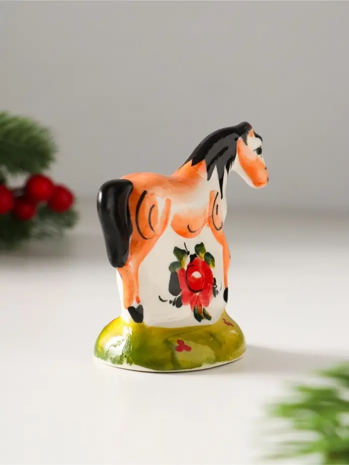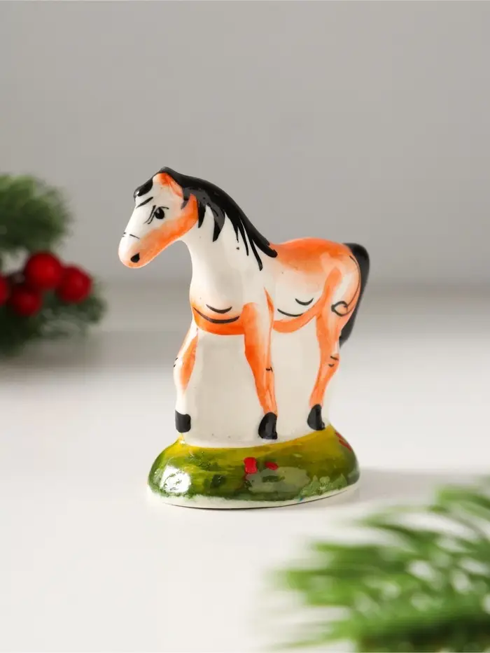 Сувенир Лошадь Зорька, 7х7х3,5 см, гжель,цвет