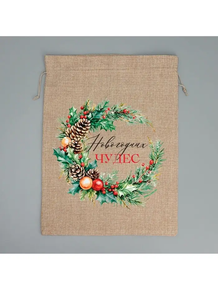 Мешок с термонаклейкой «Новогодних чудес», венок, 30 × 40 см