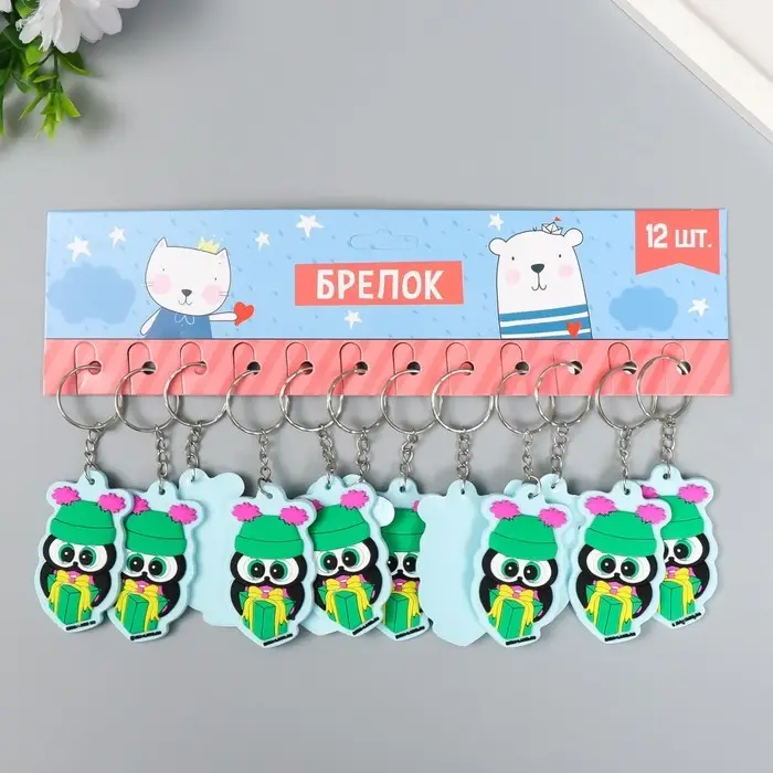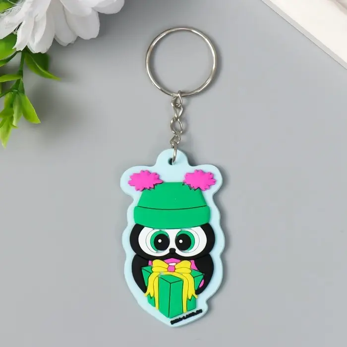 Брелок резина "Совушка в шапке с ушками, с подарком" 6х3,5 см