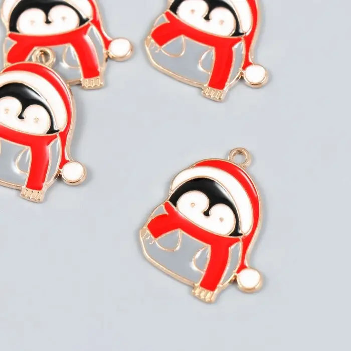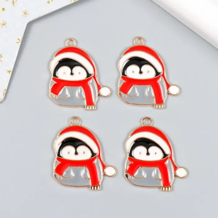 Декор для творчества металл, эмаль "Пингвин в колпаке и шарфе" золото 2,4х2,8 см