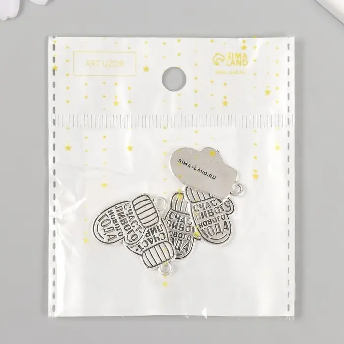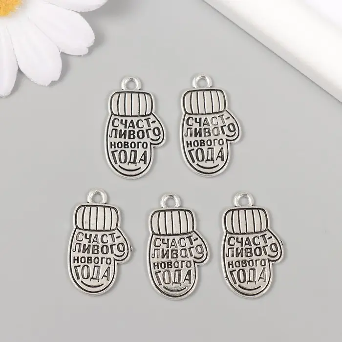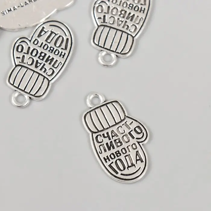 Декор металл для творчества "Варежка - Счастливого нового года" 1,5х2,5 см