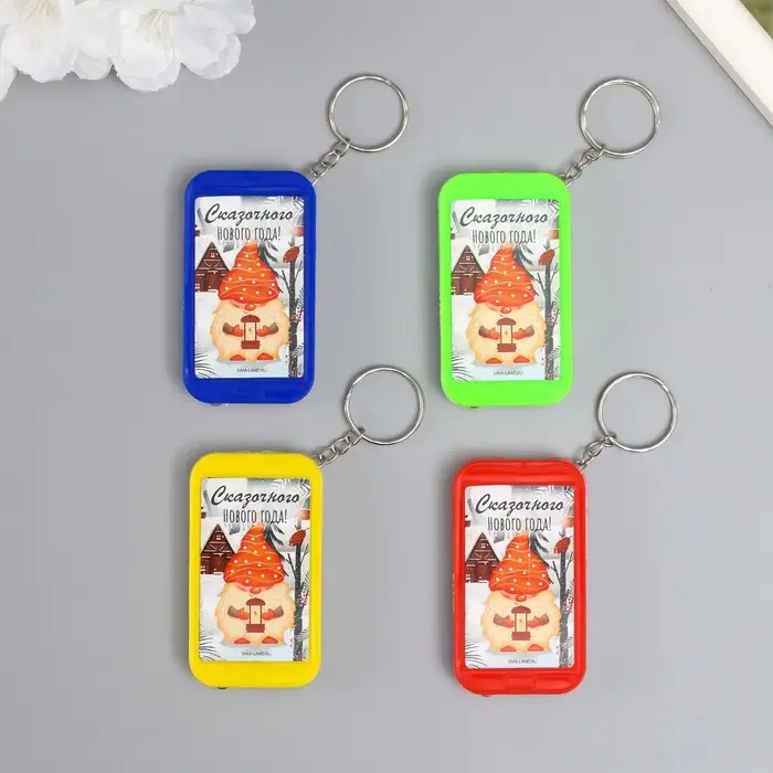 Фонарик брелок для ключей на кольце «Гномик с фонариком: Сказочного Нового года!», 6.5×3.5×1 см