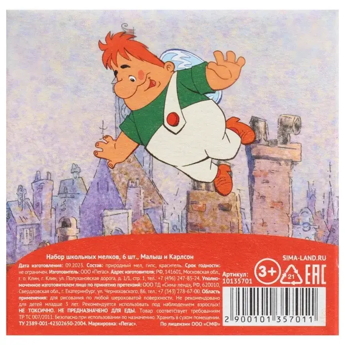 Мелки цветные школьные 6 шт. «Малыш и Карлсон», прямоугольные