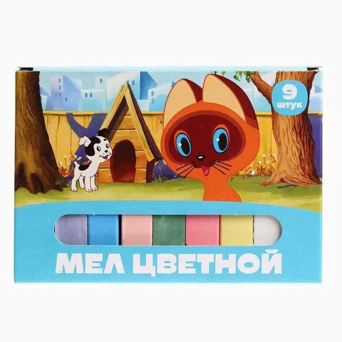 Мелки цветные школьные 9 шт. «Котёнок по имени Гав»