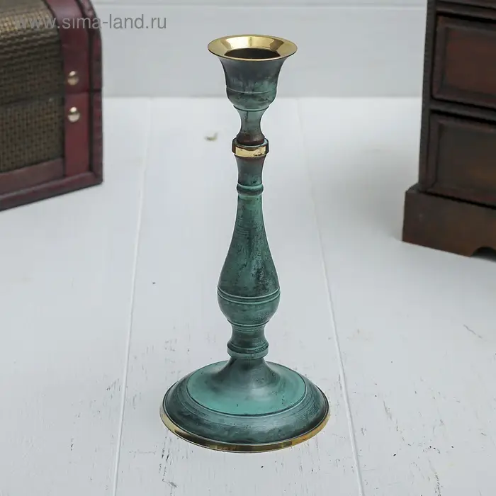 Подсвечник под старину "Надежда" латунь 7,5х7,5х17 см