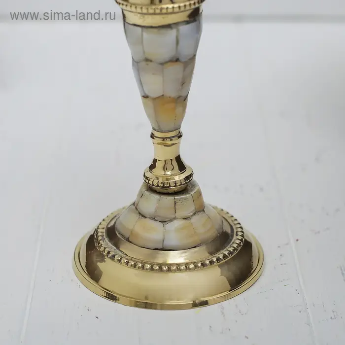Подсвечник с перламутром "Замок" на 1 свечу, латунь 7,5х7,5х17 см