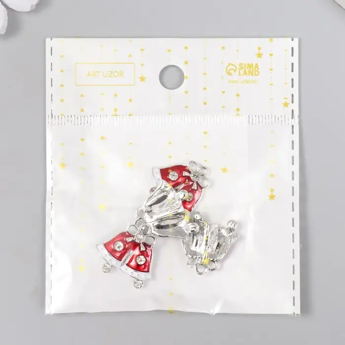 Декор для творчества металл, эмаль, страза "Колокольчики новогодние" 2х2,2 см