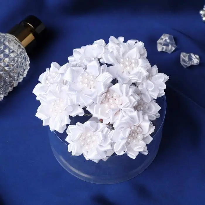 Шпилька для волос "Жемчужный цветок" 3,5х6,5 см, белый