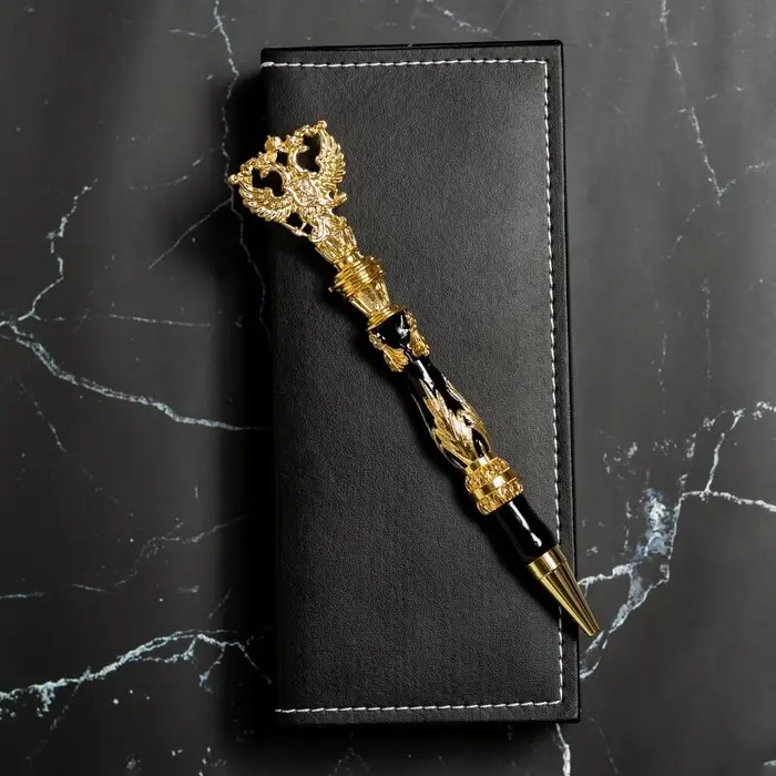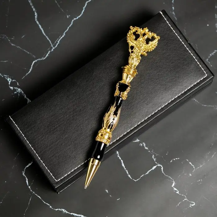 Ручка шариковая подарочная с гербом в футляре, металл , цвет чёрный, пишущий узел 1.0 мм, синяя паста