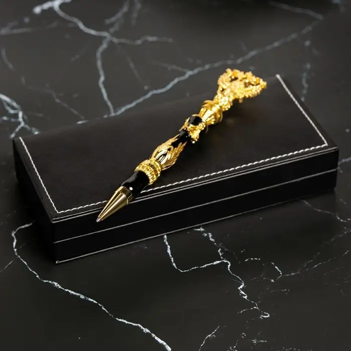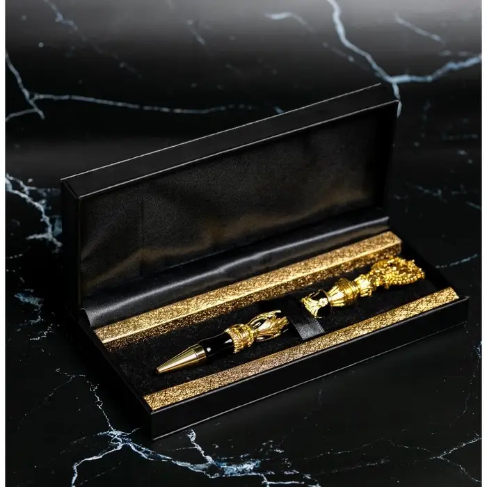 Ручка подарочная, шариковая "Вензура" в кожзам футляре, поворотная, корпус черный с золотым