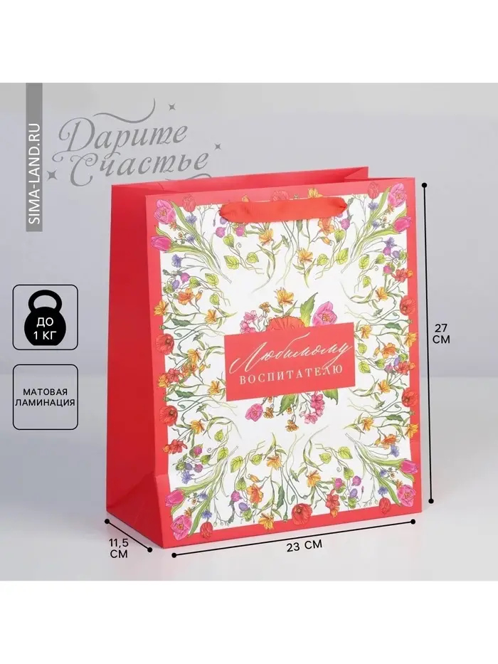 Пакет подарочный ламинированный, упаковка, «Любимому воспитателю», ML 27 х 23 х 11.5 см