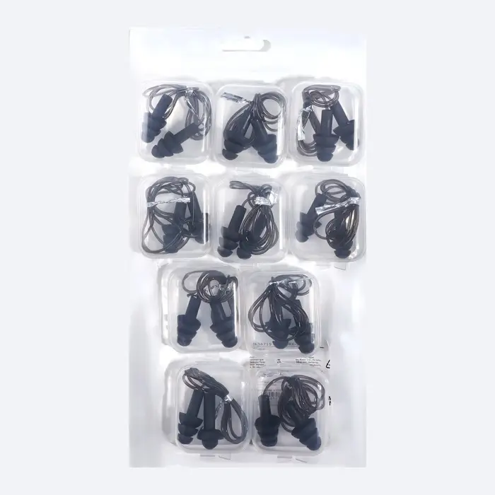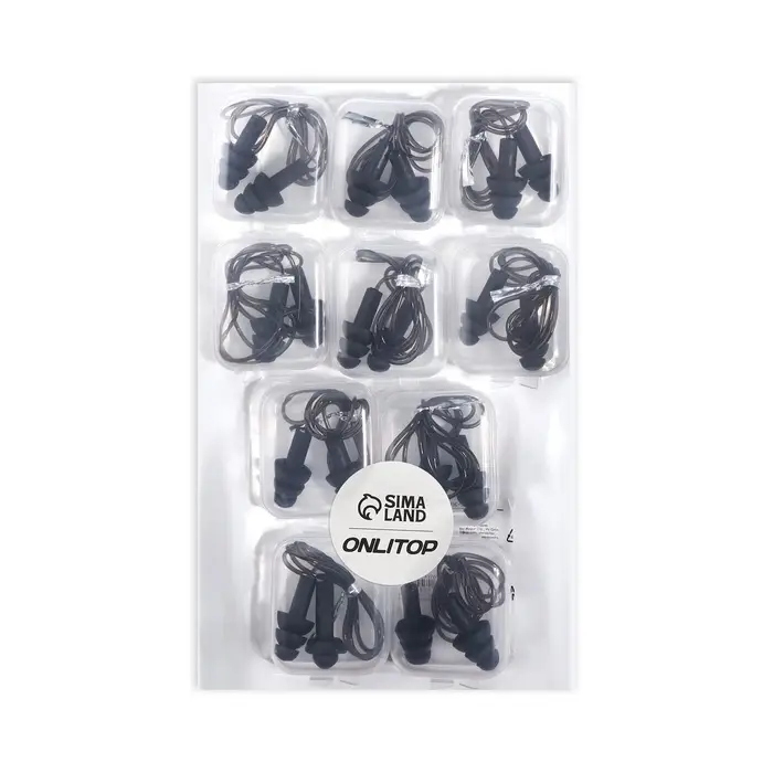 Беруши на шнурке, 3×1.7 см, фасовка 10 пар, силиконовые, в футляре, чёрные