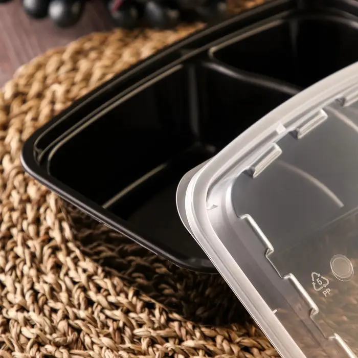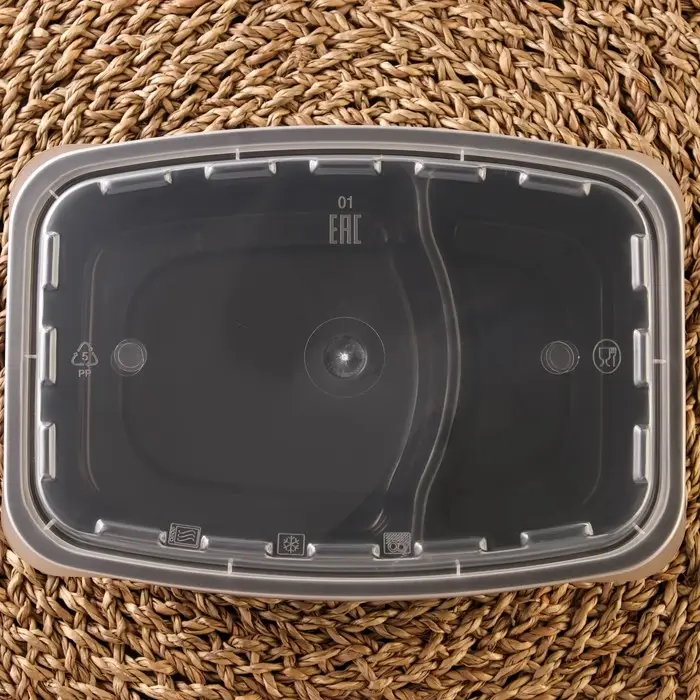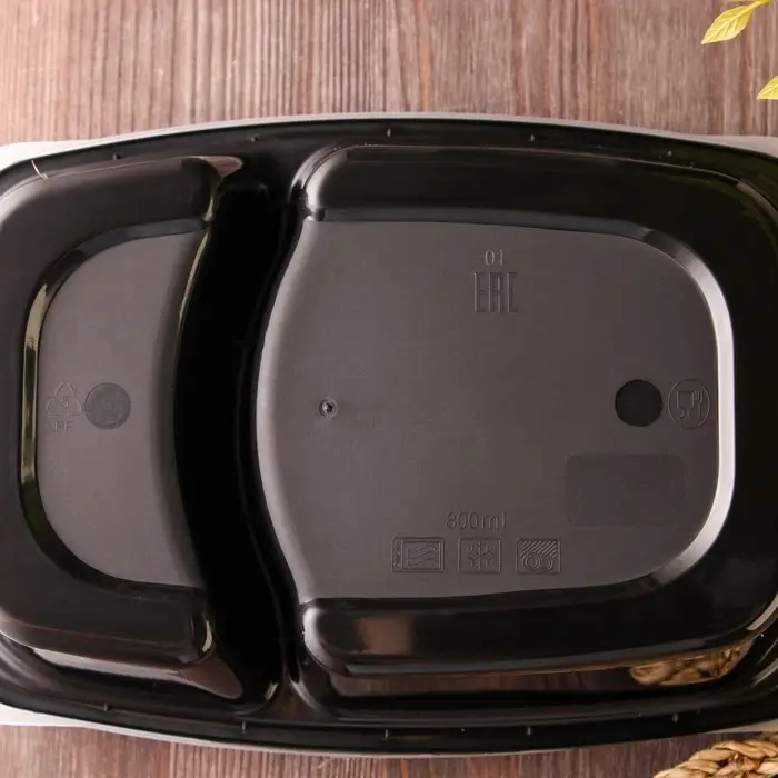 Контейнер одноразовый с крышкой, пластик, 830 мл, 2 секции, чёрный