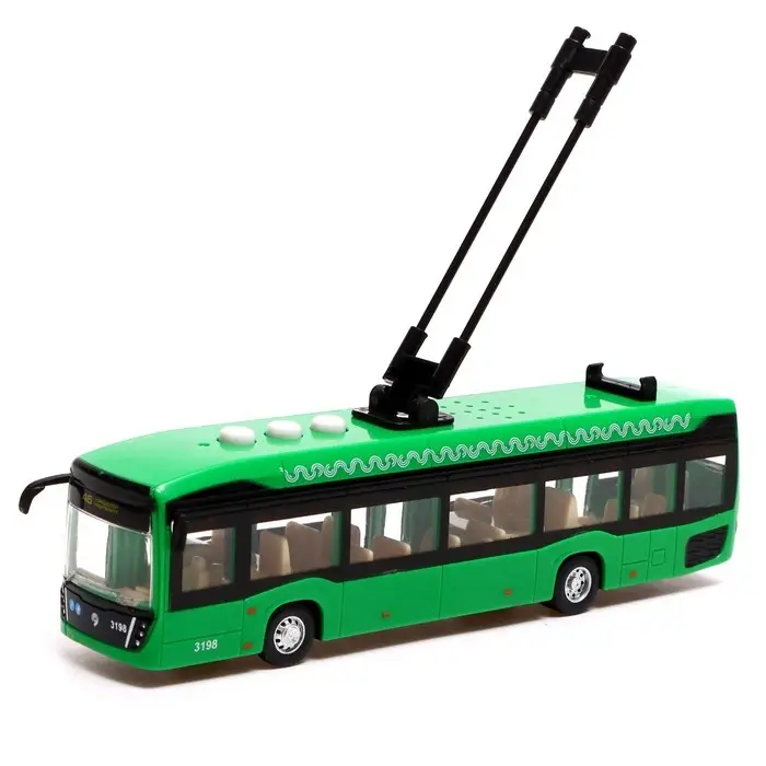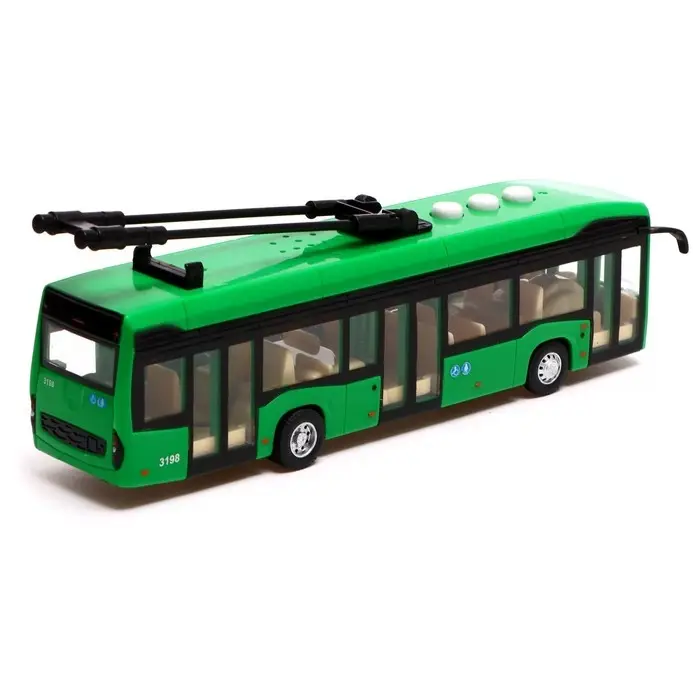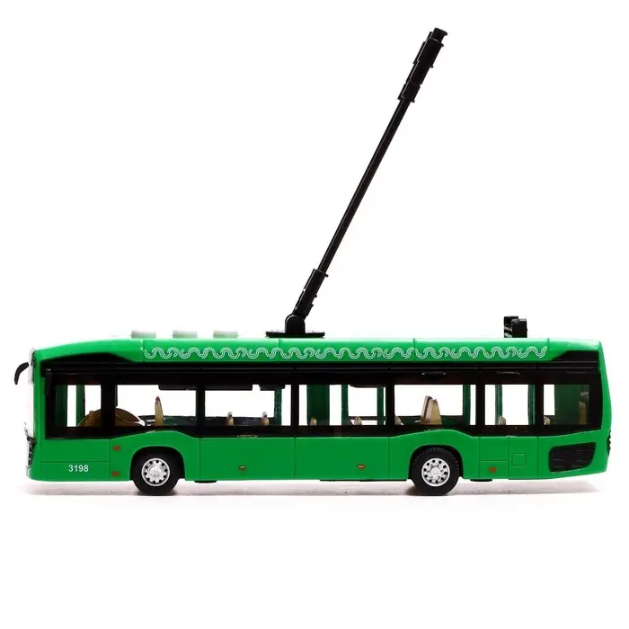 Троллейбус «Городской», 19 см, 3 кнопки, инерция, цвет зелёный, световые и звуковые эффекты
