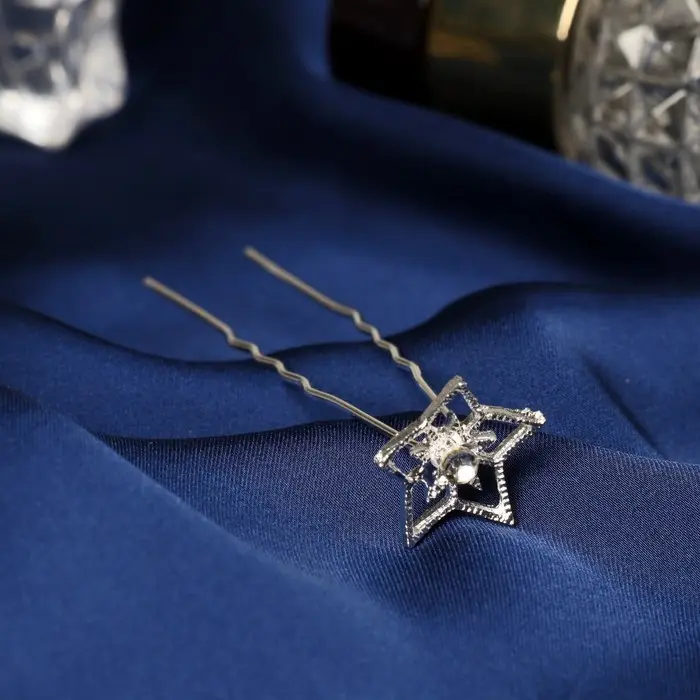 Шпилька для волос "Аврора" звезда, 1,5х6,5 см, серебро