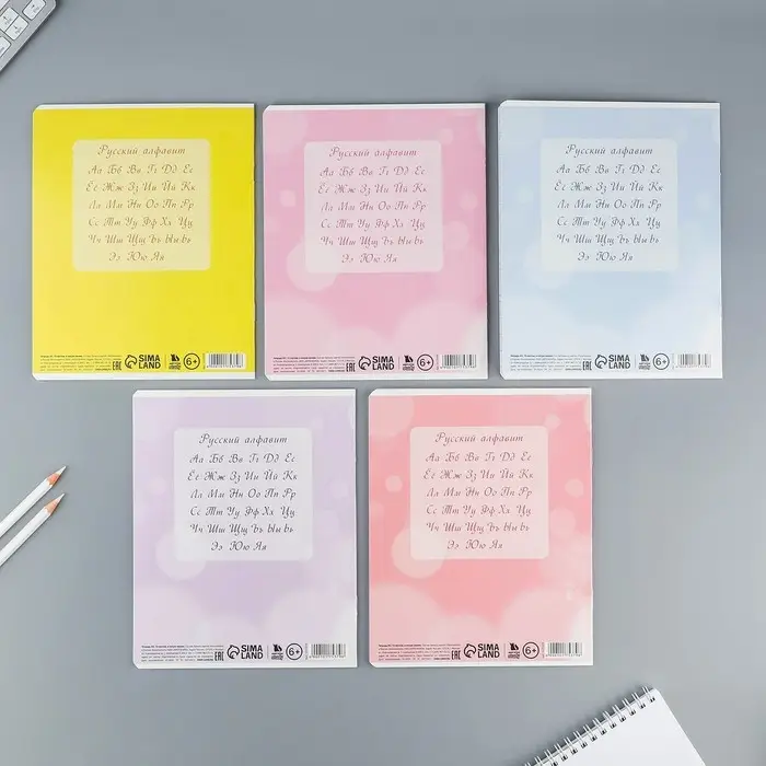 Комплект тетрадей из 5 штук, 48 листов в клетку Calligrata "Любимые питомцы", обложка мелованная бумага, блок №2, белизна 75% (серые листы)