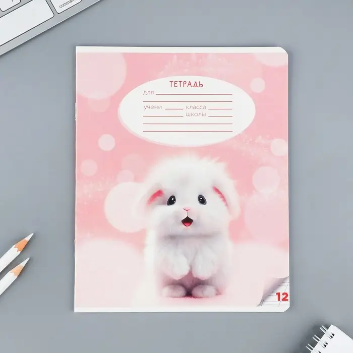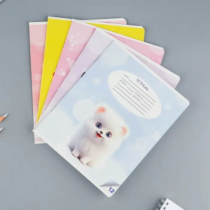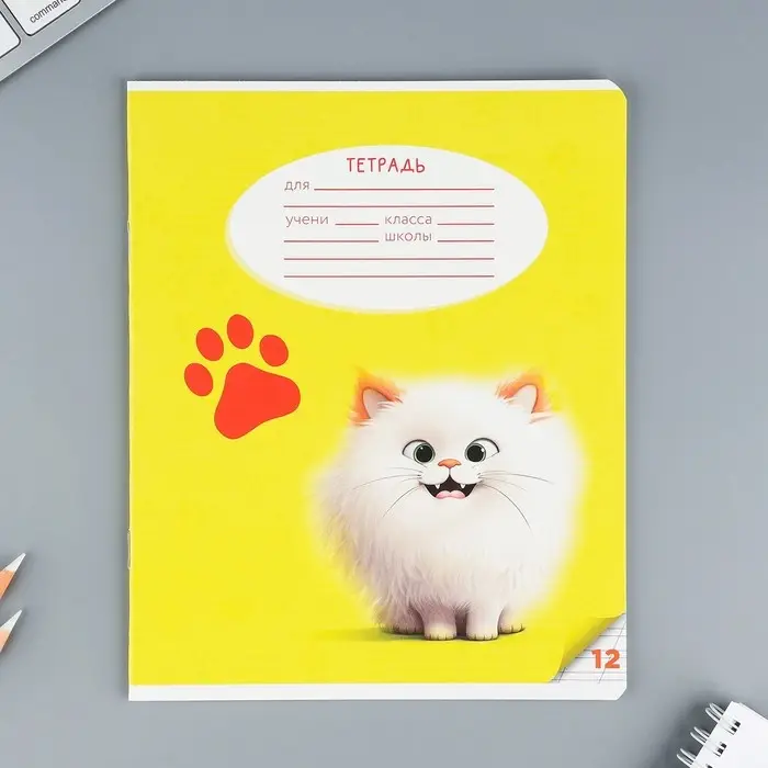 Тетрадь 12 листов в косую линейку, А5, на скрепке, блок №1 «Пушистые питомцы» МИКС