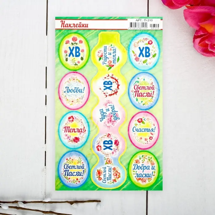 Наклейки пасхальные "Пасхальные пожелания" с глиттером