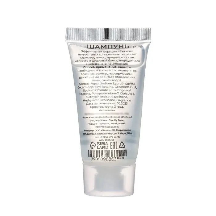 Одноразовый шампунь для волос предназначен для использования в спортзалах, бассейнах, отелях, гостиницах и СПА комплексах, а также удобно взять с собой в поход, путешествие. Легко смывается. Преимущества туб с шампунями заключается в том, что из них не проливается содержимое, а также присутствует возможность увеличенного расхода, чтобы максимально промыть каждый участок волос. Также достаточно легкий вес, чтобы носить с собой. Эффективная формула на основе натуральных компонентов сохраняет структуру волос, придает волосам мягкость и здоровый блеск, подходит для ежедневного применения. Подходит для всех типов кожи и волос.