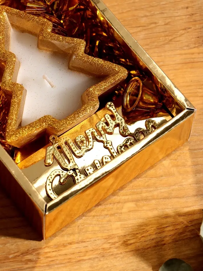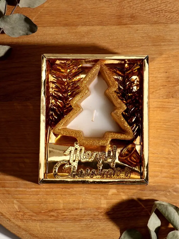 Свеча новогодняя с декором "Золотая ёлочка" 12х10х4 см