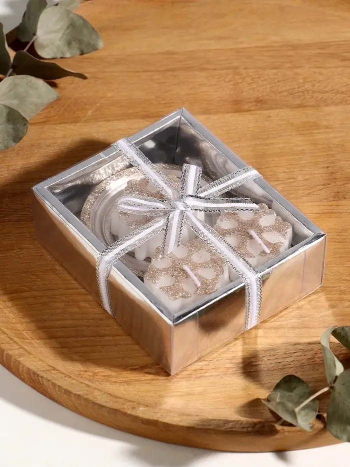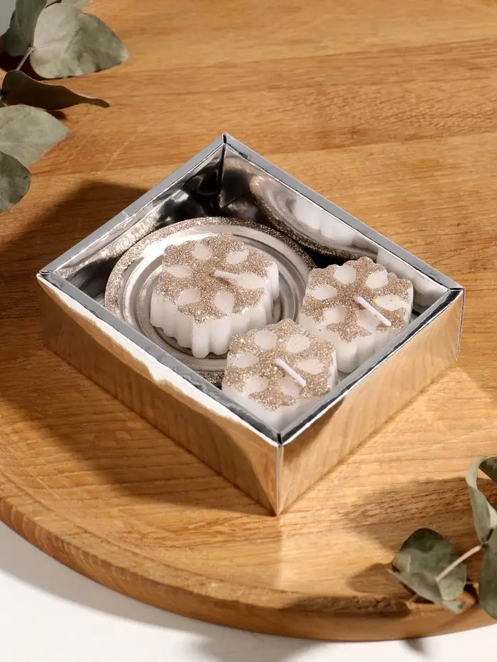 Набор свечей "Снежинки и подсвечник" 3 шт 12х10х4 см