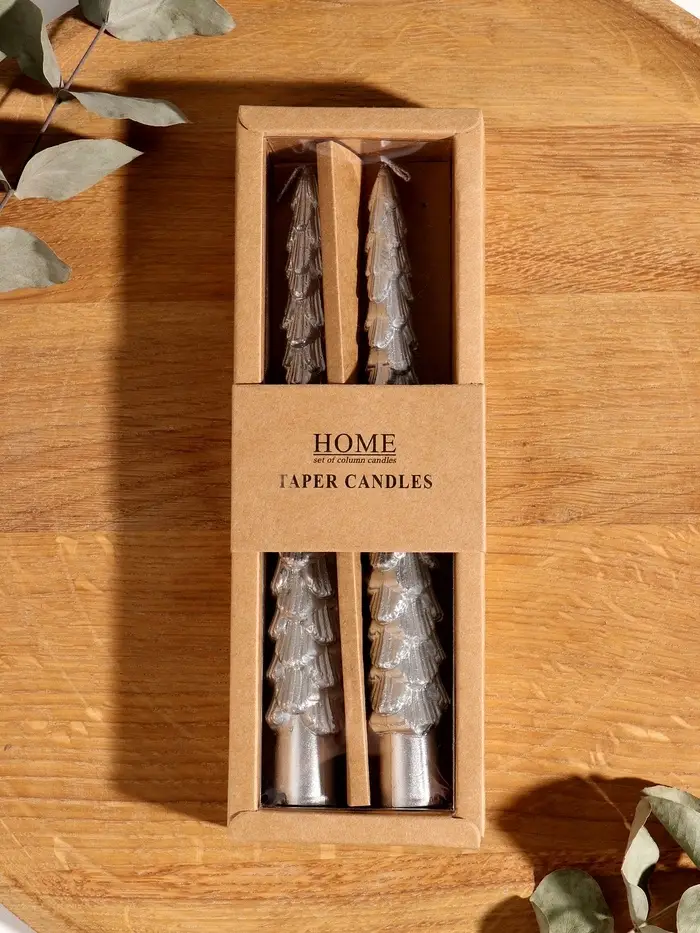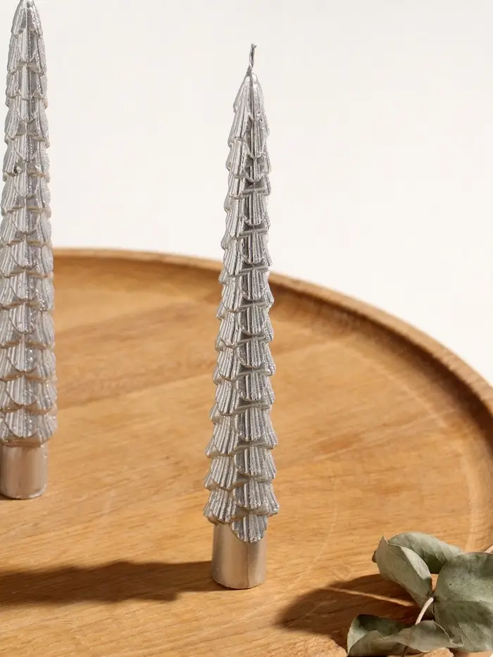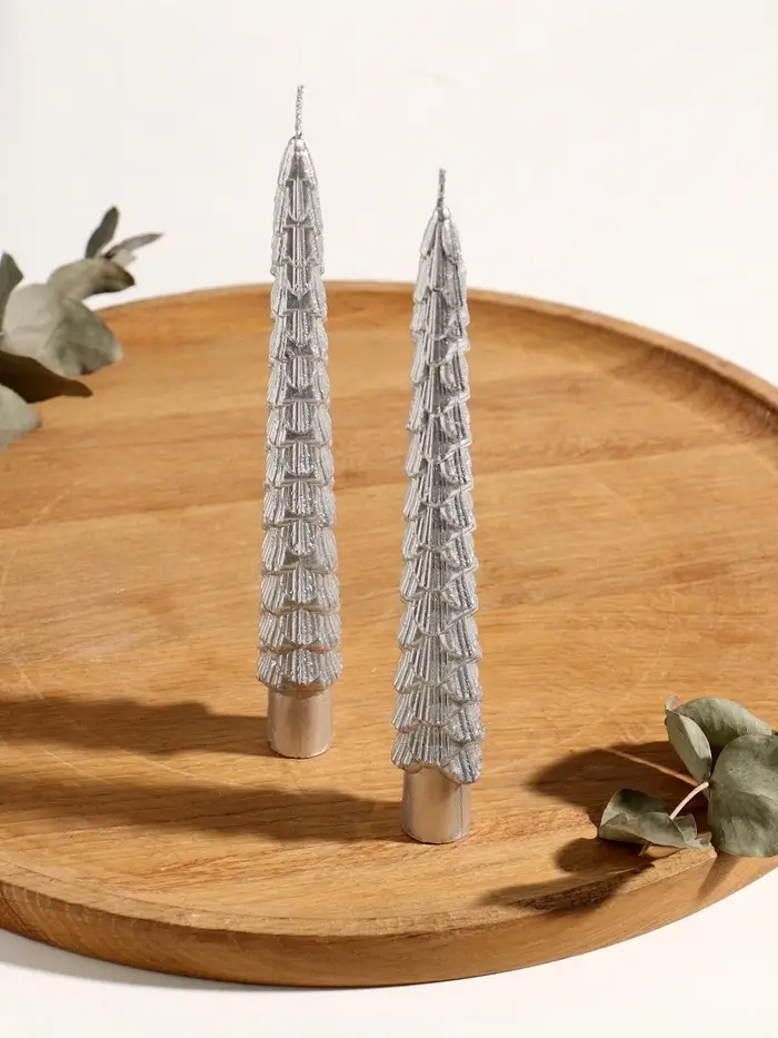 Набор новогодних свечей "Ель" 1,9х1,9х20 см, 2 шт, серебро
