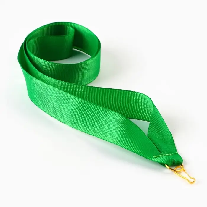 Лента для медали с крепким металлическим карабином золотистого цвета. Также идеально подходит в качестве носителя бейджа, наградной и представительской продукции. Наши ленты для медалей изготовлены из прочной ткани.