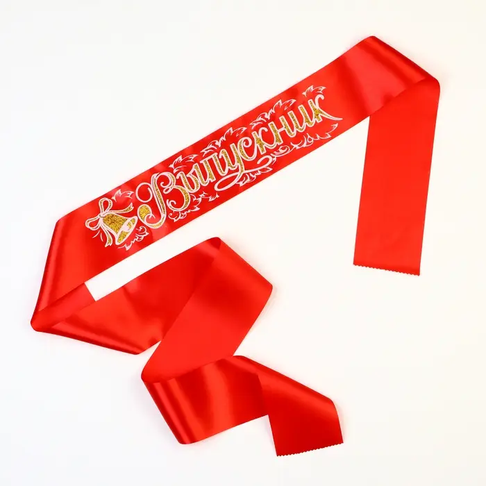 Лента на выпускной «Выпускник», атлас красный 3D