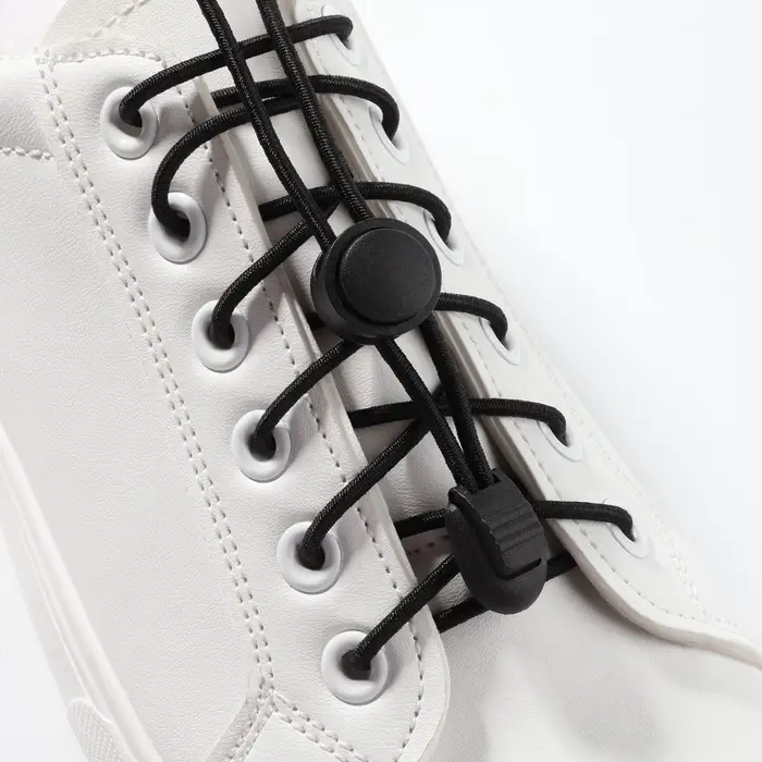 Шнурки для обуви, пара, круглые, с фиксатором, эластичные, d = 5 мм, 100 см, цвет белый
