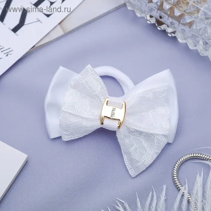 Резинка для волос "Школьница" бант кружевной, 7 см, белый