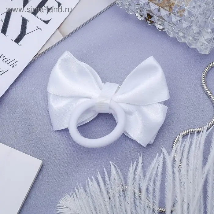 Резинка для волос бант "Школьница" классика, 7 см, белый