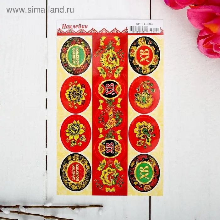 Наклейки пасхальные "Хохлома - 2" с глиттером