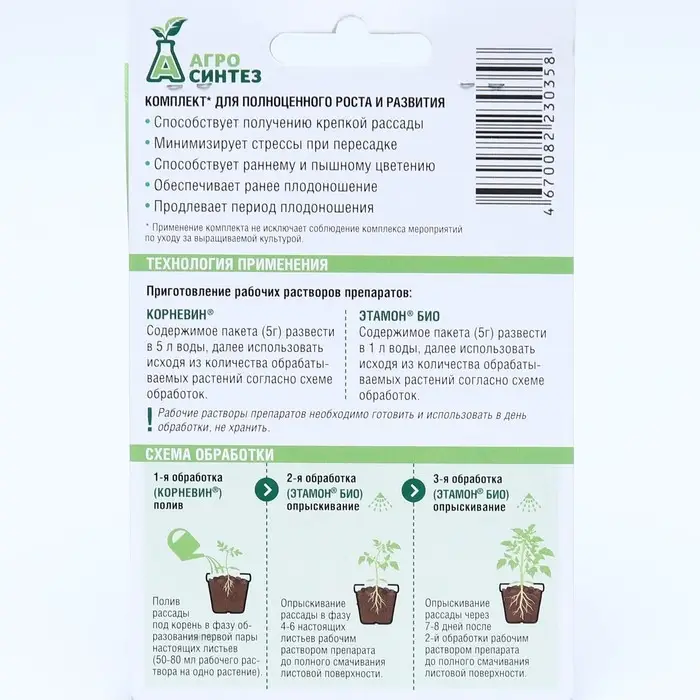 Комплект "Агро Синтез", Корневин + Этамон Био "Двойной эффект для рассады", 5 г + 5 г.