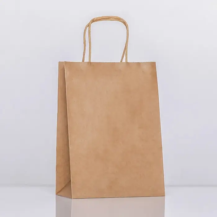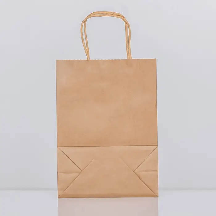 Пакет крафт без печати, круглая ручка, 15×21×8 см, 120 г