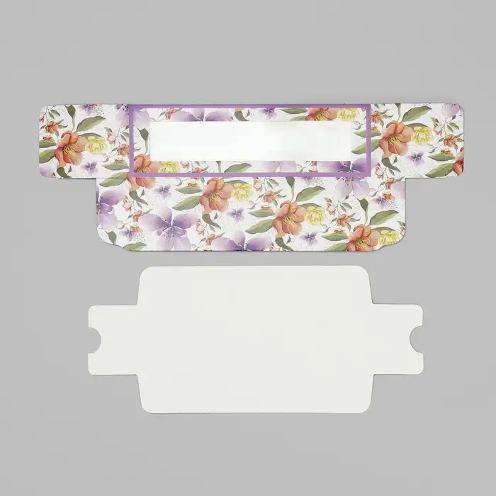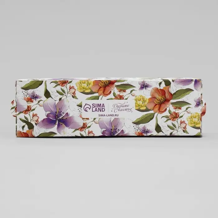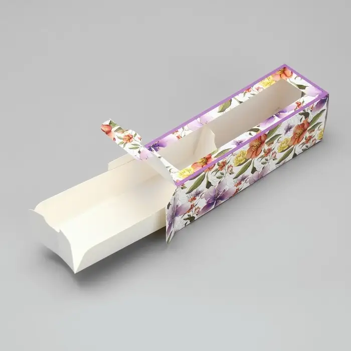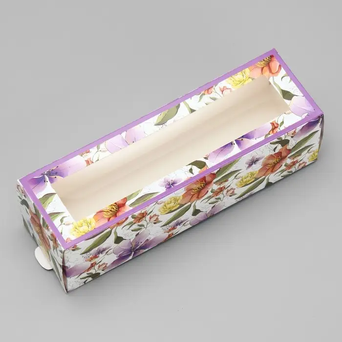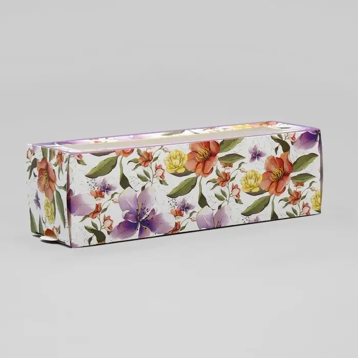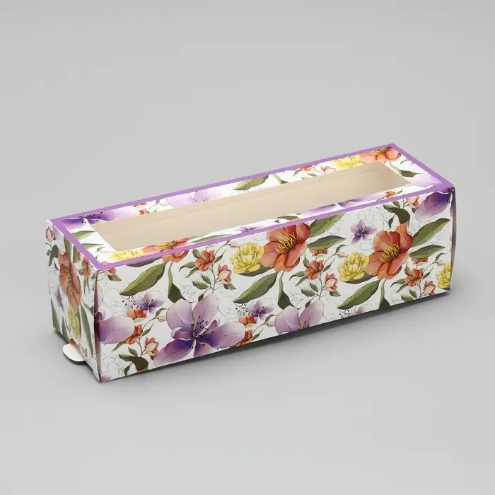Коробка для макарун, кондитерская упаковка «Ботаника цветы сиреневые» 18 х 5.5 х 5.5 см