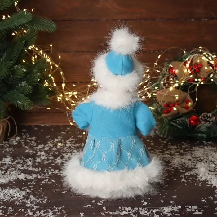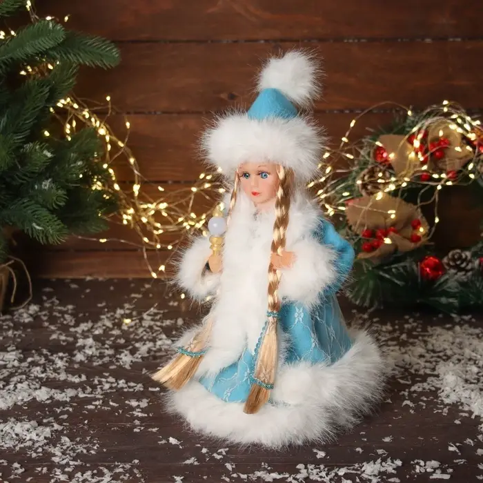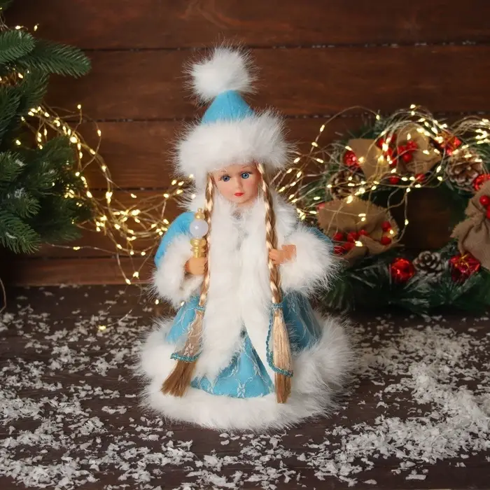 Снегурочка "В пушистой шубке, с фонариком" двигается, с подсветкой, 30х18 см, голубой