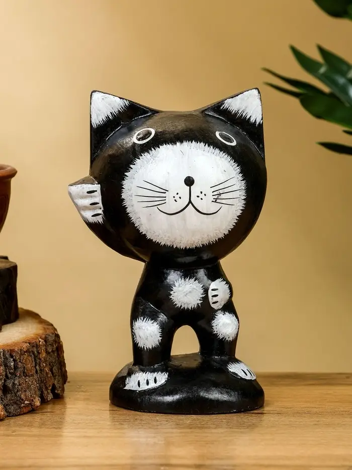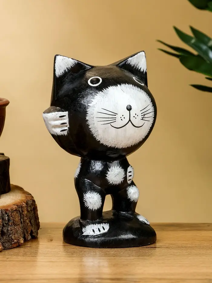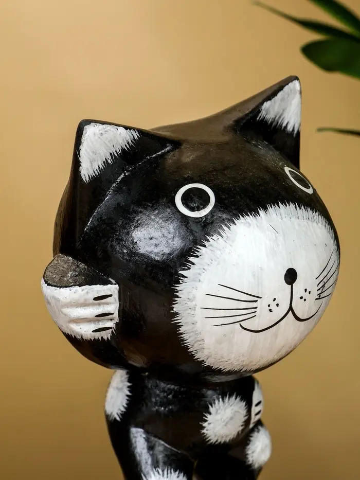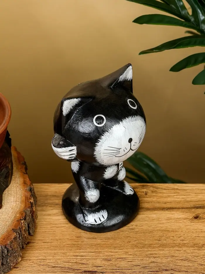 Сувенир "Кот рыбак" дерево 10х10х16 см, цв. чёрно-белый