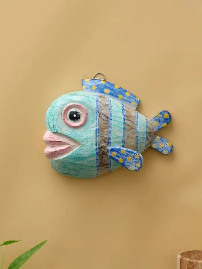 Панно «Рыба-клоун», 20×16.5×6.5 см, дерево, бирюзовое