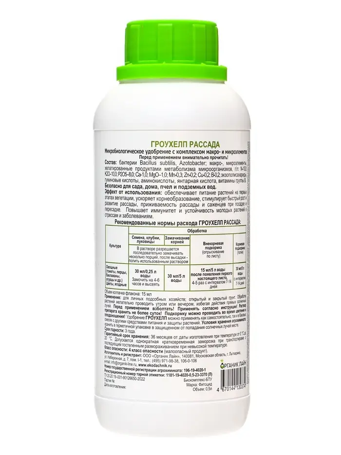 Удобрение биологическое "Гроухелп" для рассады , 0,25 л