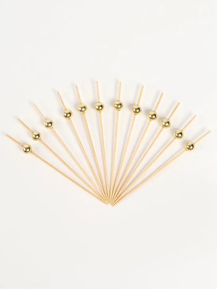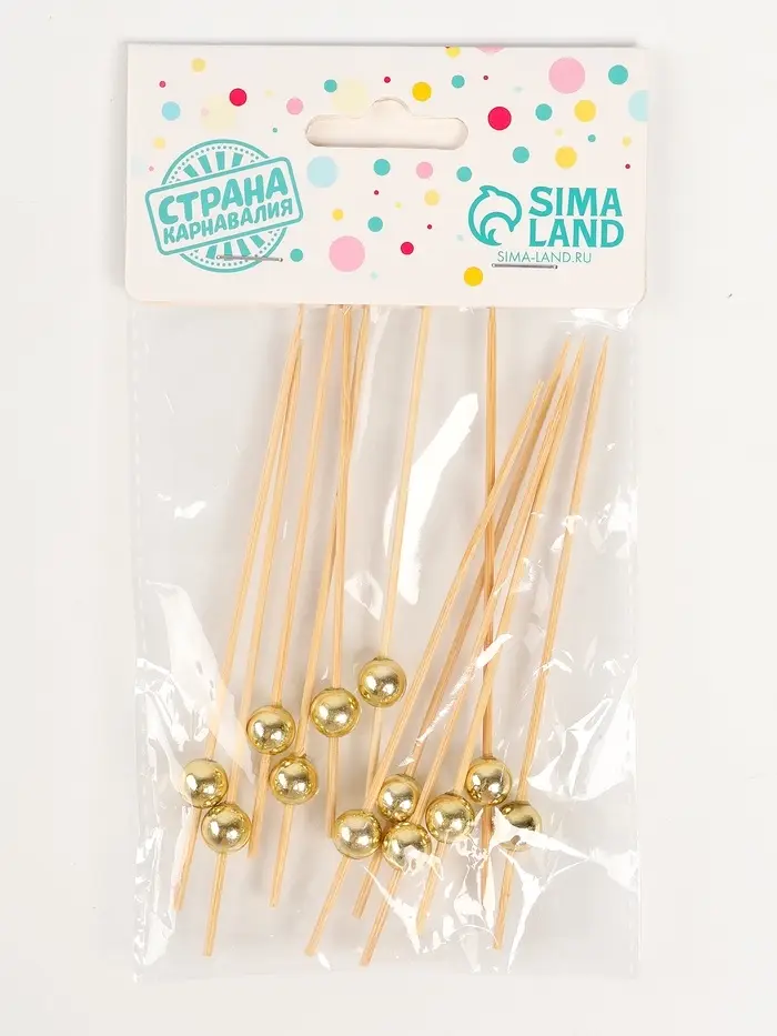 Шпажки деревянные "Жемчужина" , 12 см, набор 12 шт цвет золото