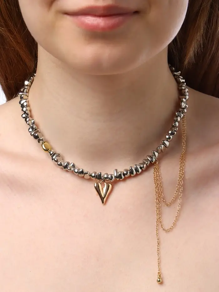 Колье "Сердце" водопад, цветной