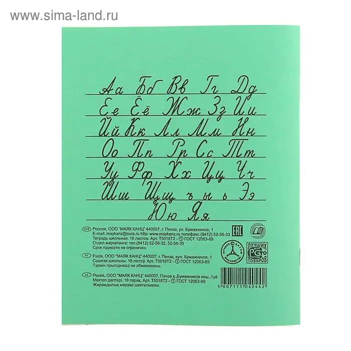 Тетрадь 18 листов линейка «Зелёная обложка», Маяк