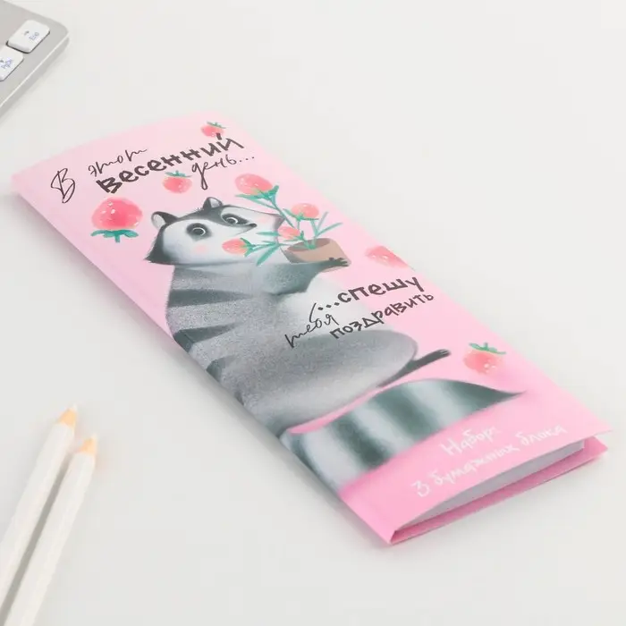 Блоки бумаги с отрывными листами, 30 л в открытке «8 марта: Енот»