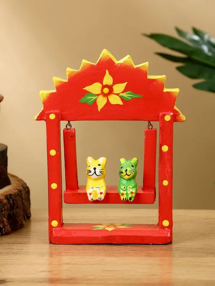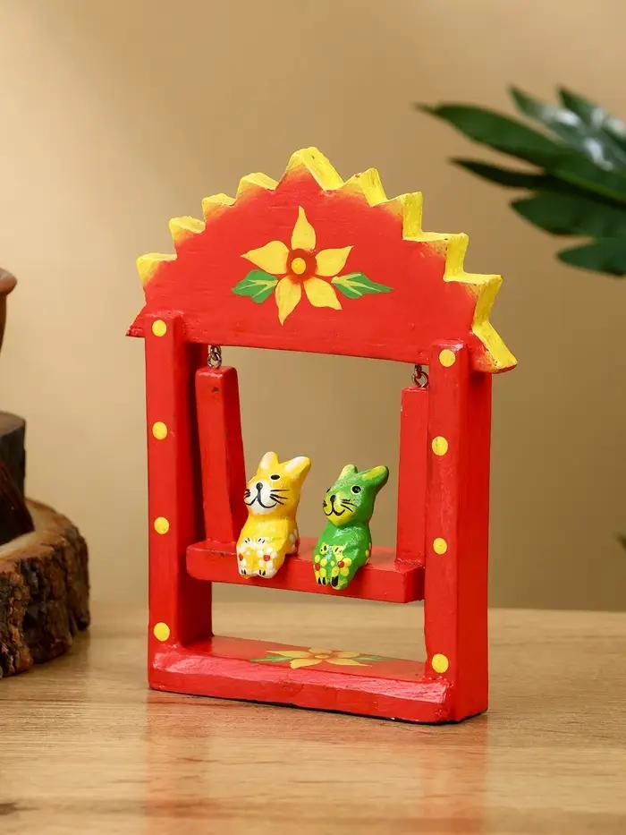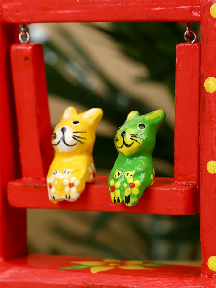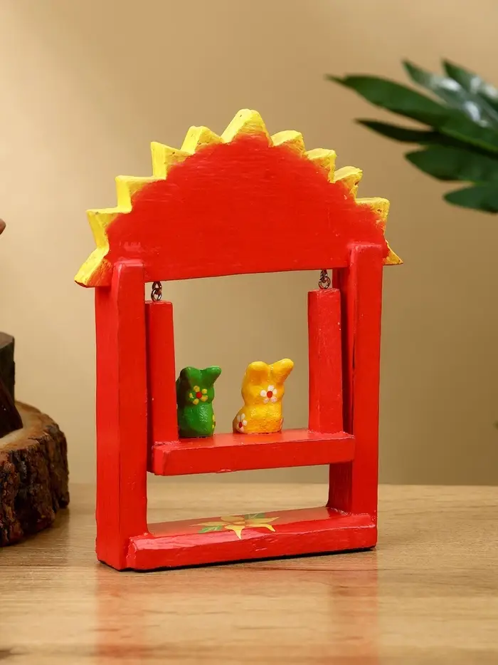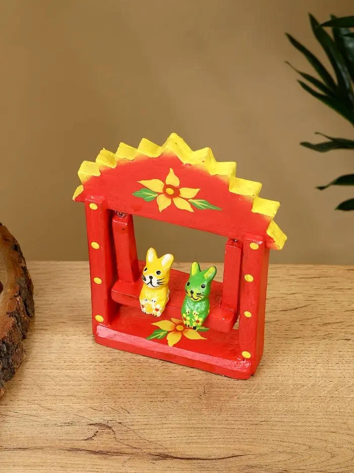Сувенир "Зайки на качелях" дерево 10х3,5х15 см, цв. красный