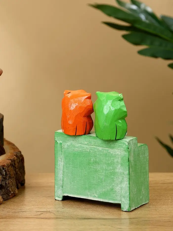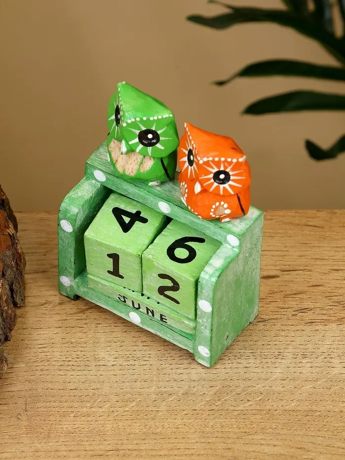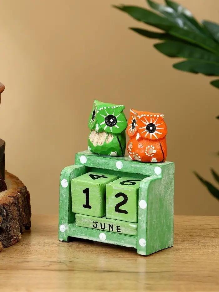 Календарь настольный «Пара совят», 7.5×4×10 см, дерево, зелёный, оранжевый