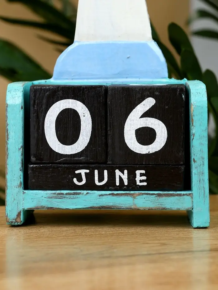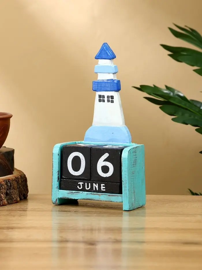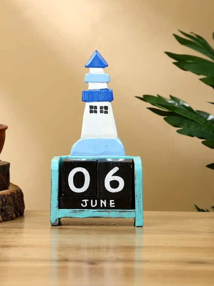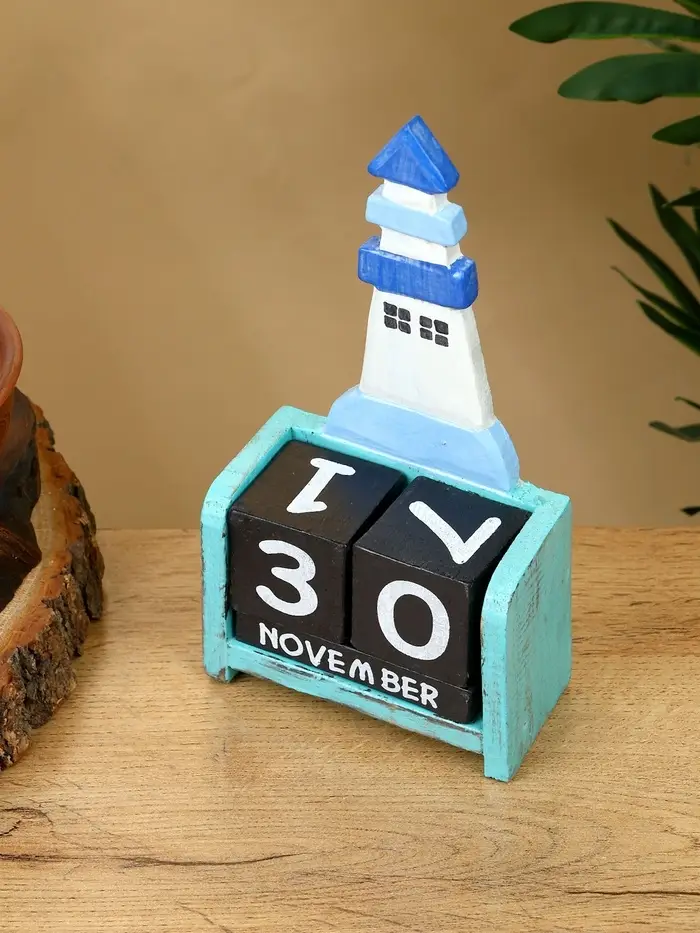 Календарь настольный "Маяк" дерево 11х5х19 см, цв. бирюзово-синий